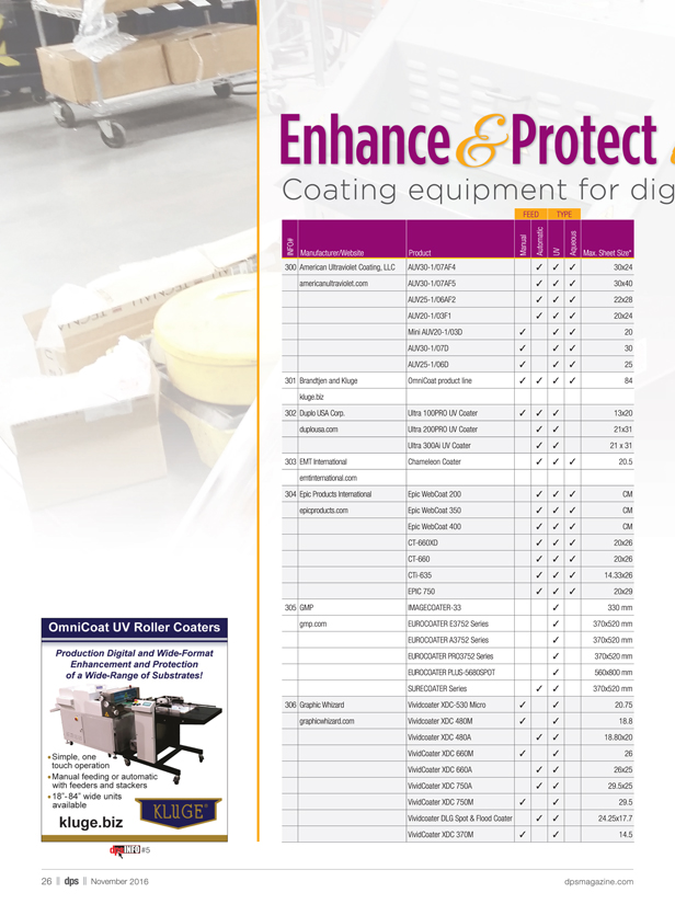 | #5 | Kluge | A - OmniCoat UV Roller Coaters |